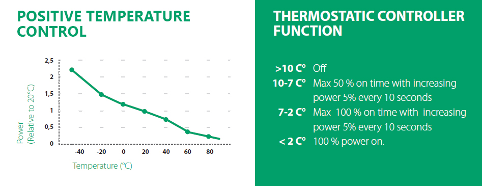 The heater works fully automated and will switch on during cold temperatures thanks to the built-in thermostat and controller. Please make sure the socket that powers the heating device will be
