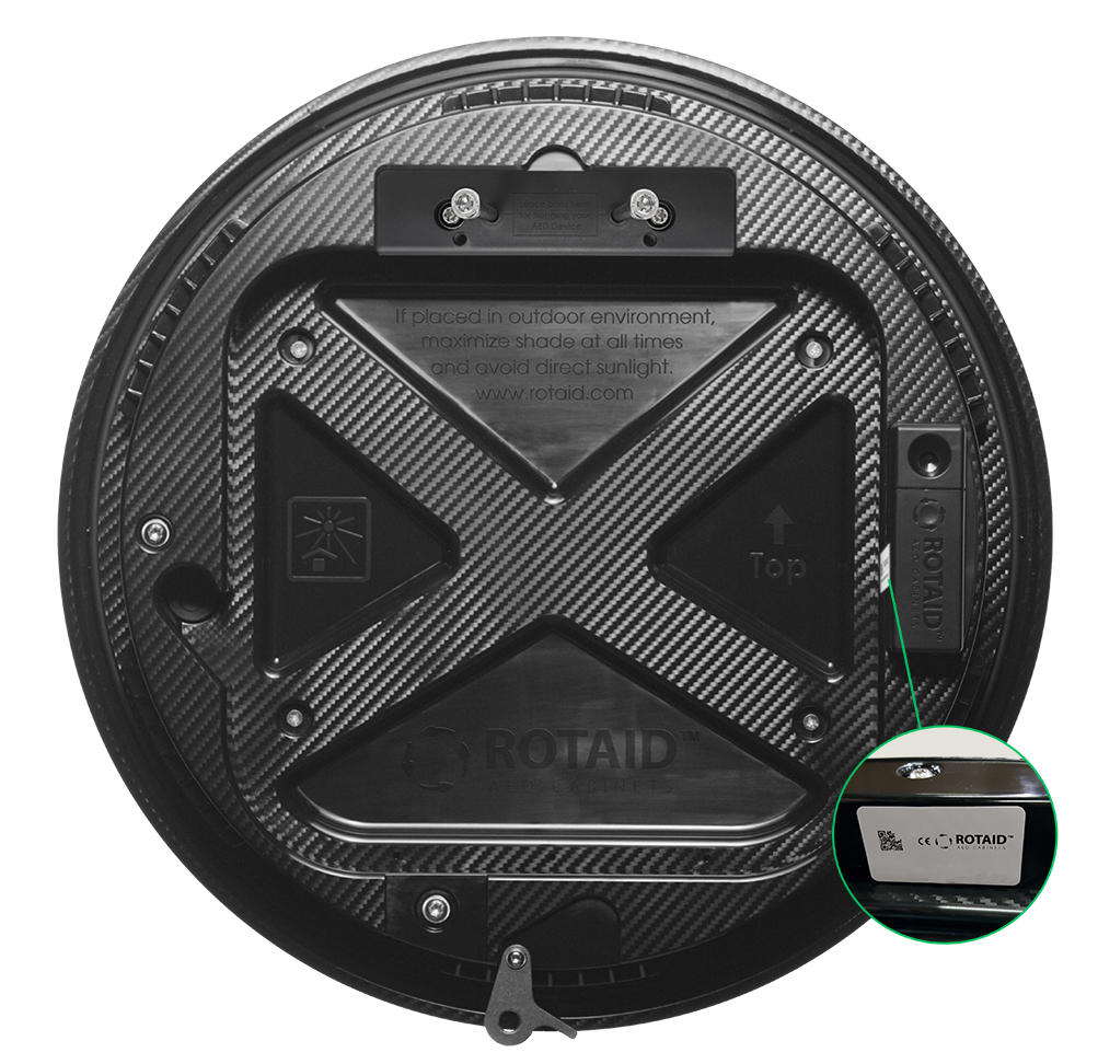 A Rotaid 24/7 can be installed on multiple places. However, it needs to be installed on a flat suface to prevent the backplate from deforming. Avoid direct sunlight at all times and ensure to maximize shade when finding a suitable location for your Rotaid. It is advised to place it on a visible spot, to ensure quick finding and AED deployment.